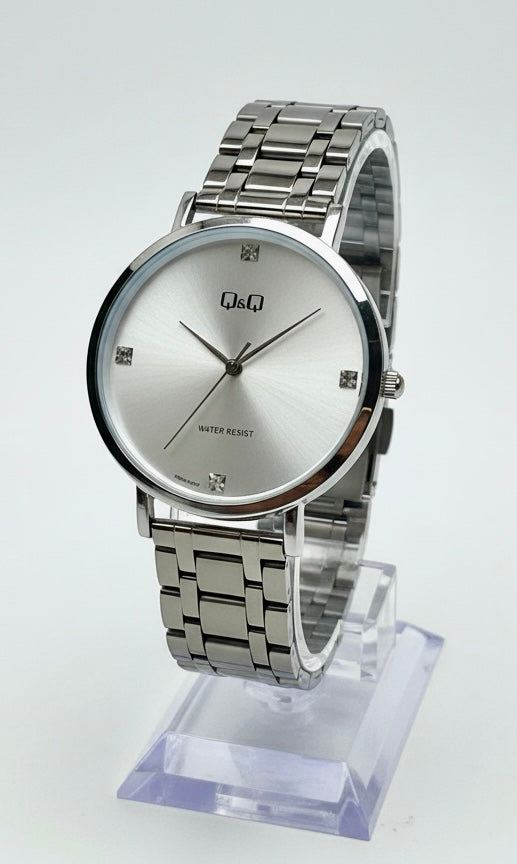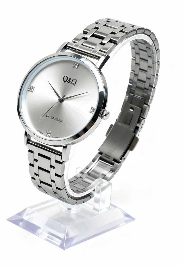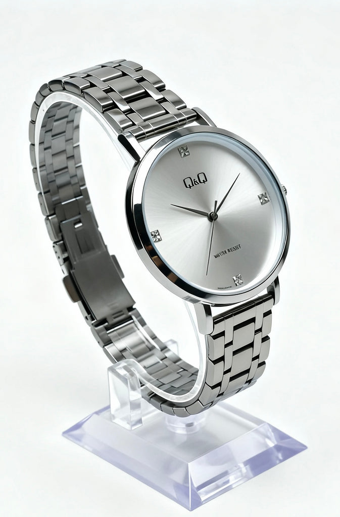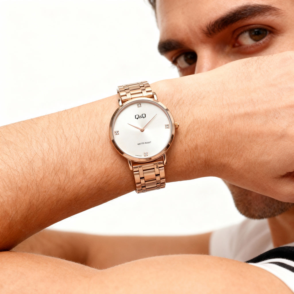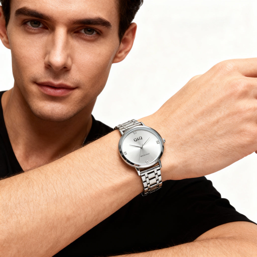 Eleva tu estilo diario con el Q&Q , un reloj que logra el equilibrio perfecto entre sofisticación clásica y diseño contemporáneo. Su característica más llamativa es la esfera blanca , que aporta profundidad y una textura premium que atrapa la luz desde cualquier ángulo.