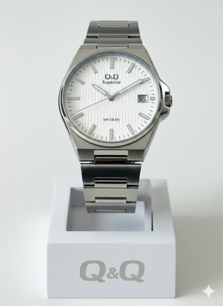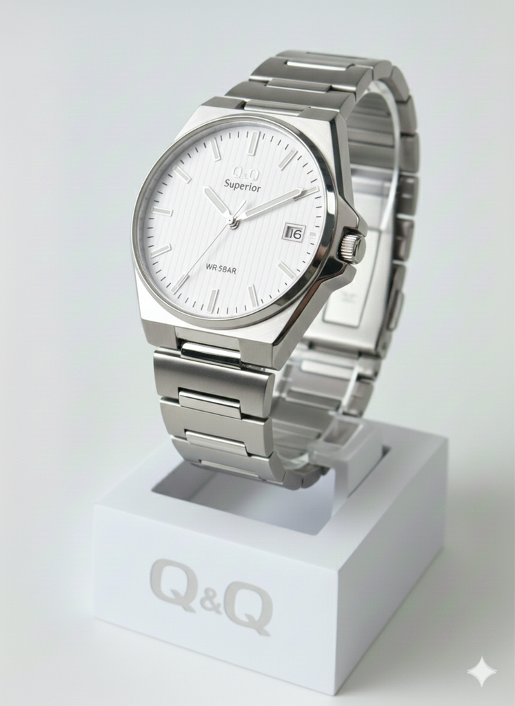 Eleva tu estilo diario con el Q&Q Superior, un reloj que logra el equilibrio perfecto entre sofisticación clásica y diseño contemporáneo. Su característica más llamativa es la esfera blanca con acabado "pinstripe" (líneas verticales), que aporta profundidad y una textura premium que atrapa la luz desde cualquier ángulo.